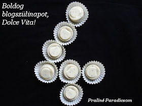 Gondolom, azzal semmi újdonságot nem mondok, hogy nagyon szeretek bonbonokkal bíbelődni, és nagyon élvezem a blogolást is. A legizgalmasabb kihívás pedig az, amikor eszembe jut egy íz, egy édesség, és megpróbálom csokihüvelybe álmodni. Most is ez történt. Bár már két kávés finomsággal is köszöntöttem Dolce Vitát blogja 4. szülinapja alkalmából, szerettem volna még valamit, valami különlegeset, mert Dolce Vita blogja volt az első gasztroblog, amivel találkoztam, és itt kezdtem megfertőződni. Születésnap, tehát torta kellene - ez villant át az agyamon. No igen, de ez bonbonos blog, ide nem furakodhat be csak úgy egy torta! Nincs mese, a tortának át kell alakulnia - bonbonná.