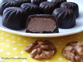 A "praliné" szót a köznyelvben általánosságban használjuk "töltött csokoládéfalat" jelentésben, tulajdonképpen gyakran a "bonbon" szó szinonimájaként - ahogy ennek a blognak a címében is :) Eredeti jelentése azonban szűkebb ennél: finomra darált mandula, mogyoró vagy dió és (karamellizált) cukor keveréke, ét- vagy tejcsokoládéval összekeverve, csokiburokban (ld. Coady: Ínyencek kézikönyve. Csokoládé. p. 29). Maga a pralinémassza (olajos magvak és karamellizált cukor keveréke massza-állagúra aprítva) sokféle bonbon alapját képezheti, cukrász nagykerekben nagy kiszerelésben meg is vásárolható. Házi használatra azonban magunk is könnyen elkészíthetjük, és a felhasználásának csak a fantáziánk szabhat határt: lehet rétegezett, kézzel kockára vágott bonbon egyik rétege, tölthetjük bonbonformába vagy adhatunk hozzá csokit, és készíthetünk belőle trüffelt. Készíthetjük különféle magvakból: mandulából, mogyoróból vagy dióból.